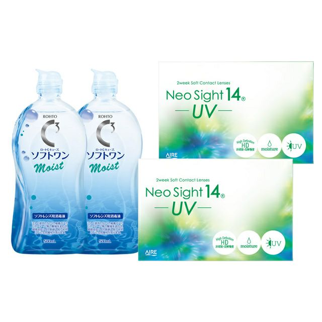 ネオサイト14UV [2週間交換] 6枚入×2箱+Cキューブソフトワンモイスト500ml×2本 送料無料