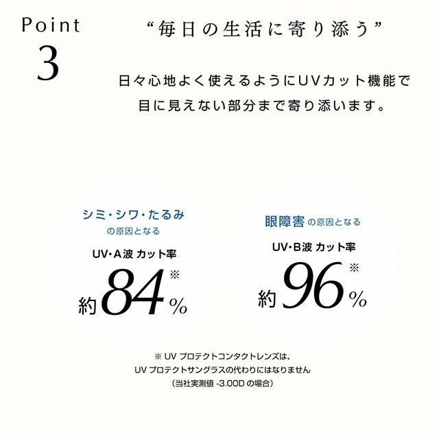 カラーコンタクトレンズは通常のレンズより疲れやすい場合がありますので、装着時間を短めにご利用されることをお勧めします。